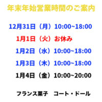 年末年始営業のご案内